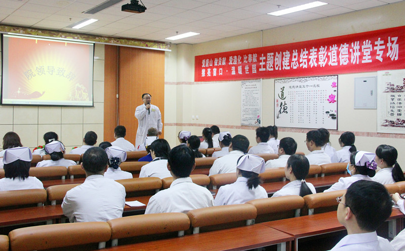 活动中,无论是思省心环节中的诗朗诵《生命之光》、还是诵经典环节中的 “三比三提”、“创三优”和“五比五赛”内容的重温……每一个环节无不让人感动,发人深省,一位年轻的医务人员发表感言这样说“道德讲堂让我充满感动,让我的心灵得到洗涤,更让我懂得了感恩,我要把这份感悟和感动带到工作岗位上,带到患者身边,用卫生人永远的青春,永恒的生命,为人类守护吉祥的生命之光。