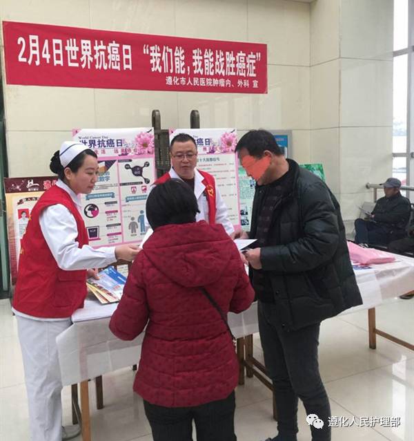 肿瘤内外科主任石国刚、郁成华带头在医院门诊大厅开展义诊活动,为患者提供免费咨询、诊断,发放各种肿瘤疾病防治宣传手册,帮助广大市民提高癌症预防知识、倡导健康的生活方式、保持积极乐观的生活态度。对已确诊的肿瘤患者予以相关指导、心理疏导和帮助,使群众深刻认识到癌症不可怕,只要早预防、早诊断、早治疗是可以做到治愈的。医务人员还深入到化验、彩超、CT、内镜室等候诊人群密集的地方进行防癌、抗癌知识的宣传,共发放宣传单300余张,接受群众咨询200余例,为100多名前来咨询群众免费测量血压和血糖。
