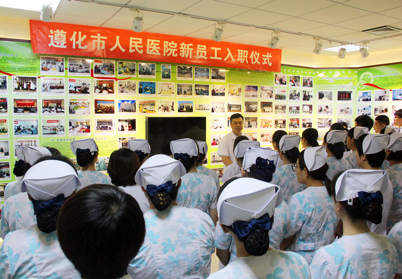 仪式上,杨晓利副院长向新员工们介绍了医院的发展历史和基本概况,希望他们站在新起点,利用新平台,尽快完成从学生到医务工作者的角色转变,从基础做起,全心全意为患者服务,更好地融入到医院的各项工作当中。新员工代表发表感言后,科教科、护理部、院感科主任为新员工授胸牌,象征着他们已成为遵化市人民医院的一分子,将行使医务人员的神圣职责:“健康所系,性命相托……为人类的健康和医学的发展奋斗终生。”最后,新员工们参观了院史展览室,共同回顾医院历史,追忆前辈医者们在医院建设和发展中做出的努力及取得的成绩,切身体验了医院积极向上的文化。