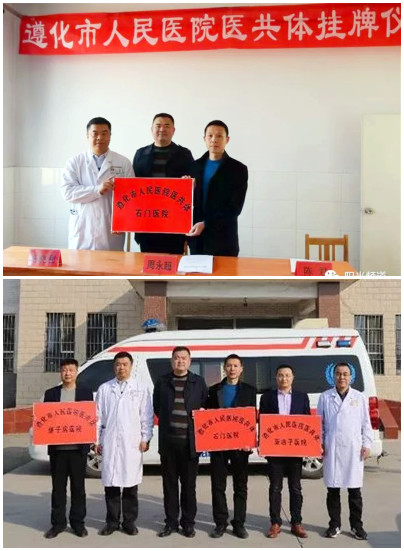 为进一步深化医改,促进医疗资源纵向整合,加快形成基层首诊、双向转诊、急慢分治、上下联动的分级诊疗模式,遵化市政府在全市启动以二级医院为主体与乡镇卫生院组建医疗共同体建设试点工作。按照市政府及卫计局的总体部署,3月22日,我院与石门镇中心卫生院、堡子店镇中心卫生院、新店子镇中心卫生院三家医共体成员单位举行授牌仪式。卫计局副局长周永超、我院副院长杨晓利及医疗专家组成员、三家乡镇中心卫生院院长等出席了授牌仪式。