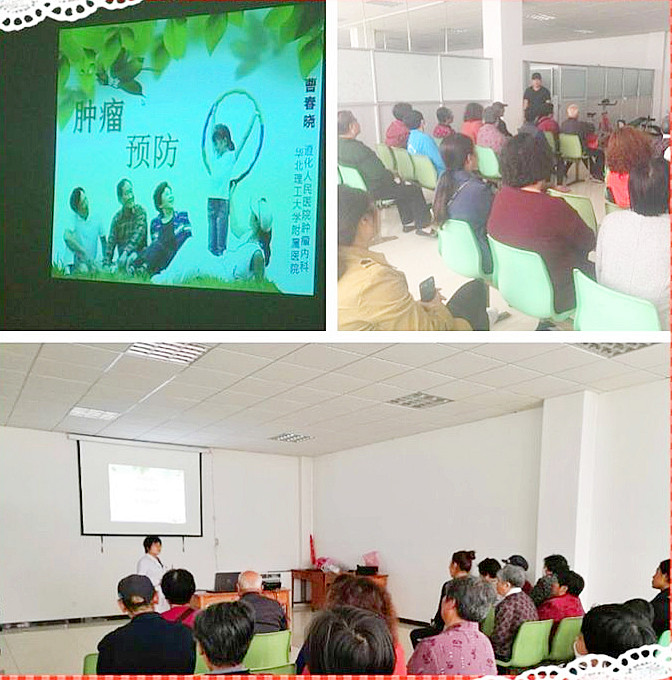 在社区,肿瘤内科主治医师为社区居民开展肿瘤预防专题讲座,从肿瘤的形成过程、早期症状、早期诊断及肿瘤的预防等多方面进行了详细的讲解,得到了居民的一致欢迎和好评