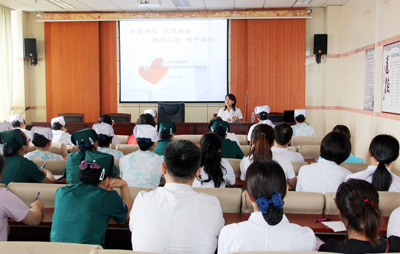为深入推进国家卫健委进一步改善医疗服务行动计划,全面提升门急诊服务质量,激发门急诊人员的工作热情,营造积极向上的工作氛围,2019年7月16日,我院在门诊三楼会议室,组织召开以“珍爱岗位 敬畏生命 勤恳工作 乐于奉献”为主题的持续改进门急诊窗口服务工作推进会。会议由门诊部主任丁继武主持,邀请主管副院长张秀艳出席,急诊科、门诊服务科、放射科、CT室、检验科、药房、收费科等门急诊科室主任、护士长及窗口服务人员100余人参加。
