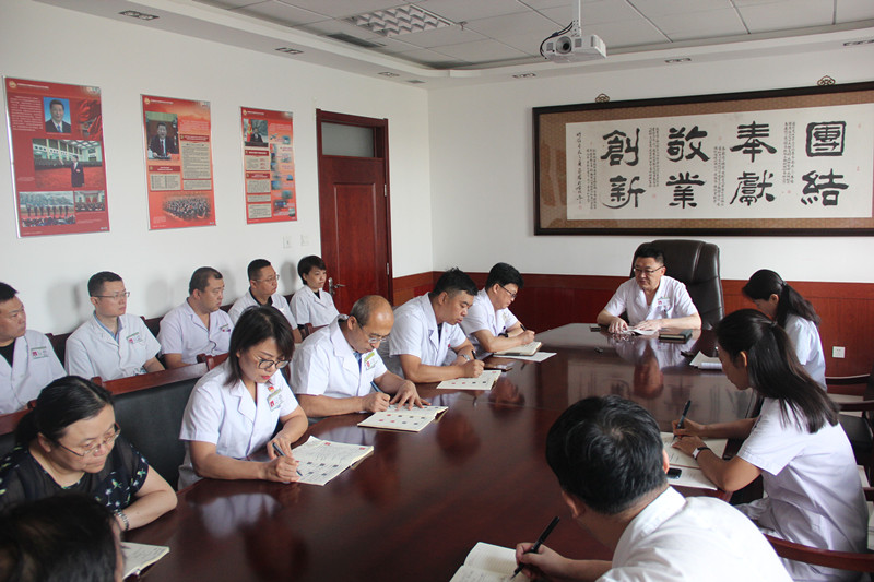 会上,张晓军院长带领大家边学边议,对主题教育的目标任务、基本要求、重大意义等结合医院工作实际进行了深入解读,并根据主题教育组织领导分工,细化落实举措,使理论学习、调查研究、检视问题、整改落实有机贯穿融合。他指出,学习应成为本能,学习力决定创造力,而创造力来源于学习力,学习效果要用结果来检验。我们要紧扣人民对美好生活的向往,作为区域医疗中心、作为医务工作者应该承担什么责任?紧贴市委市政府的决策部署,对照初心和使命,对照人民群众对卫生健康的期盼,对照自身岗位职责,深入查找工作中存在的突出问题,深入探讨如何更好地服务发展、服务社会、服务患者,深入研究破解难题的实招硬招,推动主题教育落实落地。同时强调:全体党员干部要切实把“医者初心”融入到为患者服务的各个环节、把“健康使命”贯穿到医疗发展的整个过程,要聚焦主责主业,把群众看病难、看病贵、看不好病等难点热点问题的解决作为主题教育实效的重要标准,用它来检验初心和使命,来体现忠诚与担当。我们要通过主题教育的开展,不断提高医院各专科及综合服务能力,不断提升医院服务水平和管理水平,努力增强百姓就医获得感和幸福感;要充分发挥医院龙头作用,全面推进分级诊疗,实现90%大病不出县的医改目标。