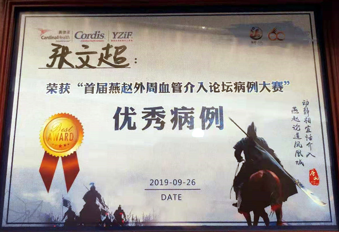 2019年9月26-27日,首届燕赵外周血管介入论坛在唐山举办。会议围绕外周血管介入技术的基础知识、基础概念、前沿知识、新技术、新材料、新理念、临床试验等进行多层次、多学科的专题交流。会议同时举行了介入病例大赛,我院放射介入科张文超在比赛中获得优秀奖。