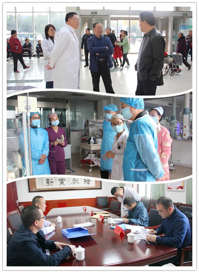 督导组一行先后来到医院门诊和住院部窗口、住院病房、新生儿病区,实地检查并询问了先诊疗后付费、“一站式”结算服务、健康扶贫宣传资料、贫困患者报销等工作的落实以及新生儿病区的基础设施、仪器设备配置、工作流程及抢救能力等情况。随后又通过听取汇报、访谈交流、查阅档案和病历等方式深入挖掘我院在健康扶贫、深化医改、服务能力提升、现代医院管理制度建设等方面好的做法和工作亮点。在座谈交流中,张晓军院长详细介绍了医院近两年各项工作的开展以及“8+1+2+3”诊疗模式及医共体建设情况。岳全心书记对市医院在健康扶贫、新生儿救治能力等各方面工作中取得的成效予以充分肯定,对我院在全市医疗卫生机构中的龙头引领作用表示赞赏,同时对如何做好卫生健康工作也提出了宝贵意见和建议。