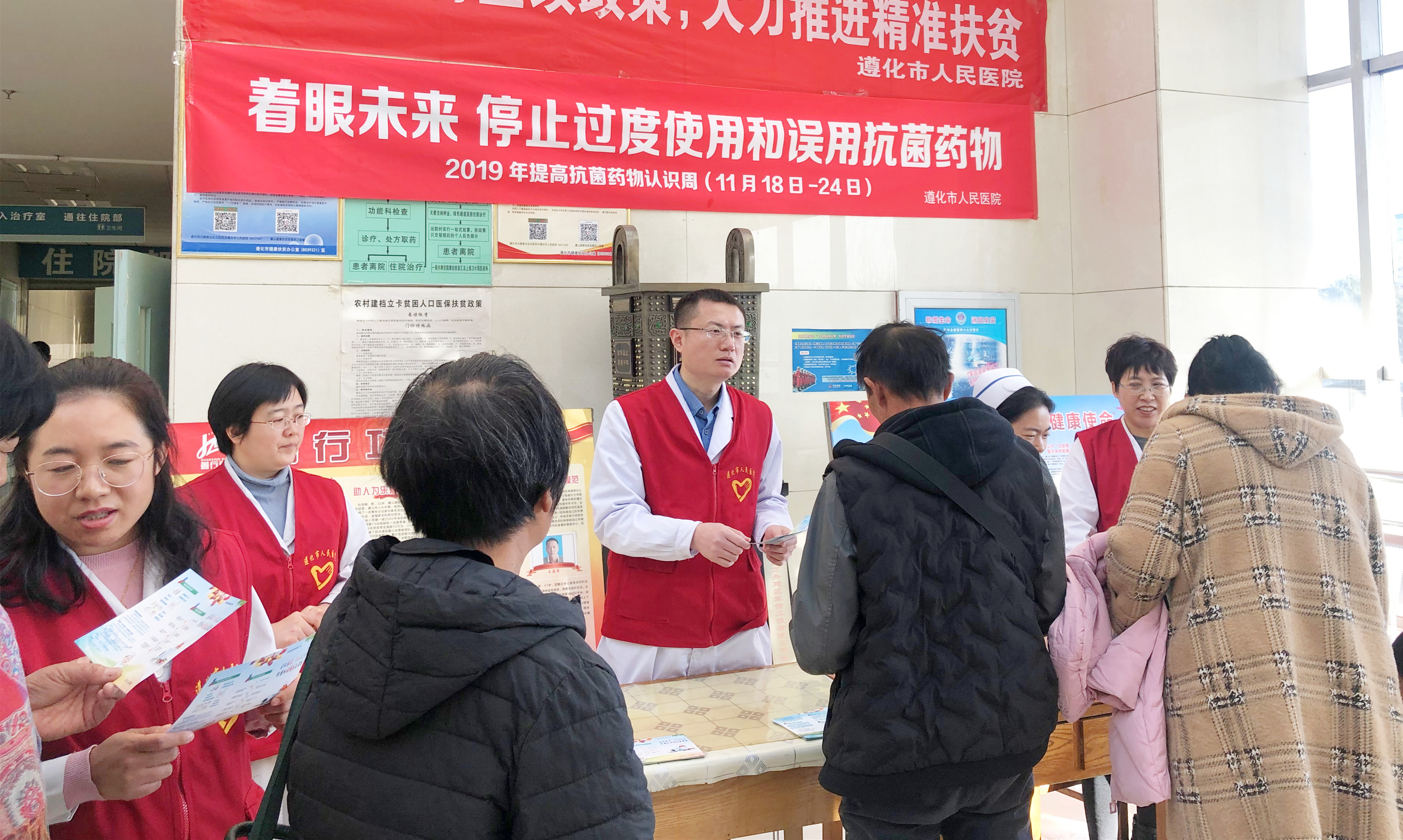 为深入贯彻落实《国务院关于实施健康中国行动的意见》,根据《“十三五”国家药品安全规划》的有关要求,倡导合理用药、安全用药理念,服务百姓健康,2019年11月18日,我院在抗菌药物合理应用管理小组的组织下,在门诊大厅正式启动2019年“提高抗菌药物认识周”活动。活动采取现场专家咨询、摆放宣传展板、发放抗菌药物合理使用宣传资料等方式进行。对每一位前来咨询的人员,都耐心解答,提供用药知识和饮食注意事项指导,宣传介绍合理使用抗菌药物的重要性;对大家关心的“发烧了是否就要用抗菌药物”、“越高级越贵的抗菌药物是否效果越好”、“静脉输液比口服用药是否更快更有效”、“抗菌药物用量越大杀灭细菌是否更有效”等问题进行了详细解说,纠正了常见的用药误区。活动现场共接受咨询70余人,发放宣传材料100余份,得到了患者及家属的一致认可。