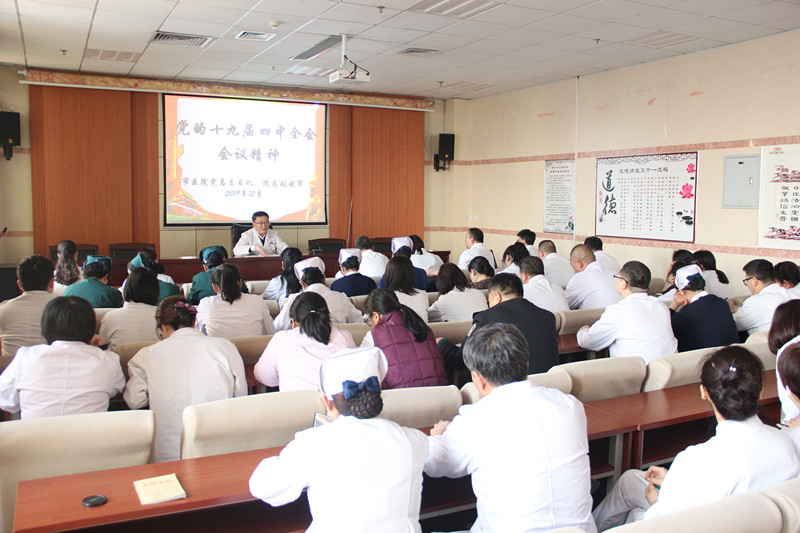 为深入扎实开展好十九届四中全会精神的学习宣传贯彻,进一步巩固深化“不忘初心、牢记使命”主题教育成果,近日,我院党委书记张晓军带头为全院党员干部做十九届四中全会精神宣讲,各支部党员代表近100人参加会议。