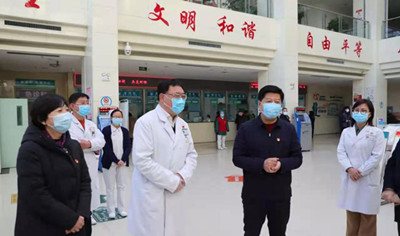在门诊大厅,董书记和大家亲切握手并予以关怀问候。他表示,医务工作者是“文明热情、厚德重义”遵化人民的优秀代表,面对突如其来的新冠肺炎疫情,是广大医务工作者奋战在第一线,冲锋在最前沿,不畏艰险、攻艰克难,守护着人民群众的生命健康;在武汉疫情告急时,又是广大医务工作者挺身而出,白衣执甲、逆行出征;你们用奉献诠释了职责,用奉献彰显了价值。此时此刻,我代表市委、市政府对大家的辛苦付出和勇于担当表示崇高的敬意和衷心的感谢。希望广大医务工作者在今后的工作中,继续发挥“前哨”作用,在做好自身防护的同时,一丝不苟、一刻都不能松懈地做好疫情防控工作,为全市人民的生命安全和身体健康作出新的更大贡献,为我市疫情防控筑就坚实屏障。