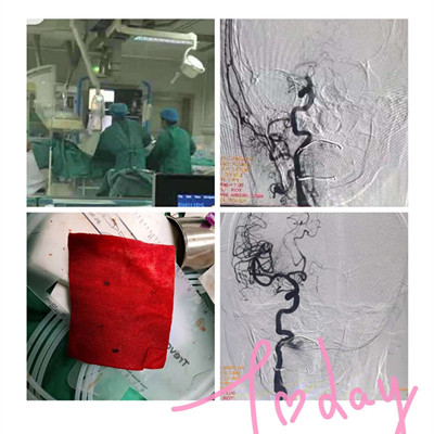 患者92岁高龄,失语、凝视麻痹、左侧肢体完全瘫痪,完成头颅CT检查后,发现患者为颅内大血管急性恶性闭塞,如果闭塞血管不能及时开通,患者危在旦夕,性命攸关。急诊病房紧急联系放射介入科,副院长孟庆波马上查看患者,建议立即实施介入取栓治疗。闭塞血管的开通迫在眉睫,但为一位92岁高龄的老人行颅内血管介入手术治疗,其难度之大、风险之高,可想而知,不仅是在国内,国际上手术成功的案例也是寥寥无几。患者家属纷纷表示:“父亲虽然年龄大了,但是只要有一线希望,就要试一试,我们相信医生!”面对患者家人的信任与期盼,面对老人求生的眼神,孟院长决定啃一啃这个“硬骨头”,积极准备手术。时间就是大脑,时间就是生命!卒中中心团队各司其职,抓紧每一分每一秒全力救治病人,时间一分一秒的过去了,正如孟院长头上落下的一滴滴汗水。终于,手术成功结束。老爷爷缓缓抬起了原本瘫痪的上肢,神志基本转清。回到病房后,医护人员又为老人制定了详细的后续治疗计划和护理措施,经过3天的治疗患者神志清楚,语言沟通良好,肢体活动基本恢复,能够在家人搀扶下行走。”