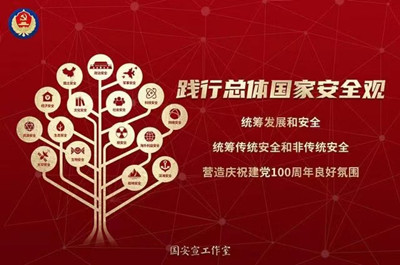 第三条 国家安全工作应当坚持总体国家安全观,以人民安全为宗旨,以政治安全为根本,以经济安全为基础,以军事、文化、社会安全为保障,以促进国际安全为依托,维护各领域国家安全,构建国家安全体系,走中国特色国家安全道路。
