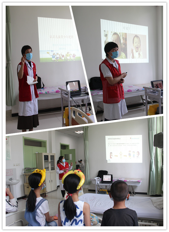 儿科病房里同样热闹非凡。多彩的气球、可爱的卡通、美味的蛋糕、精心准备的礼物、热闹的会场,都让住院的孩子们兴奋不已,让家长们心中倍感温暖。王伟医生对儿童常见病相关知识的讲解,更是拉近了医生与家长之间的距离。