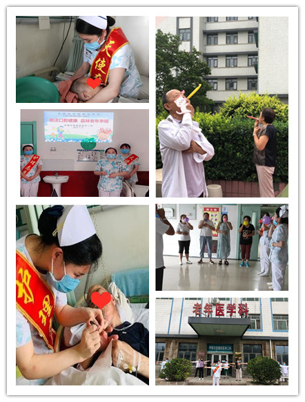 为使健康宣传惠及更多老年人,老年医学科的护理人员积极落实基础护理,加强护理服务,为住院患者刮胡子、剪指甲,保持三短六洁,指导患者正确起身姿势三部曲;主治医师徐凤君还根据今年的活动主题,向老年患者普及正确的刷牙方法、假牙如何清洁等基础口腔保健的相关知识,并告诉大家保持口腔清洁对降低肺炎疾病发生率的重要意义。护理人员还贴心地为大家送上软毛牙刷,希望大家通过今天的老年健康宣传活动重视口腔健康;科护士长赵淑娟以手卫生和如何降低安全风险为切入点,为大家讲解了老年人护理安全和日常生活保健的知识。最后的游戏环节,美女护士带领大家来到户外一起做呼吸康复操,并拿出吹吹卷和大家一起进行呼吸训练小游戏,吹吹卷的口哨声和患者们的欢笑声不绝于耳,大家在欢声笑语中学到了知识。