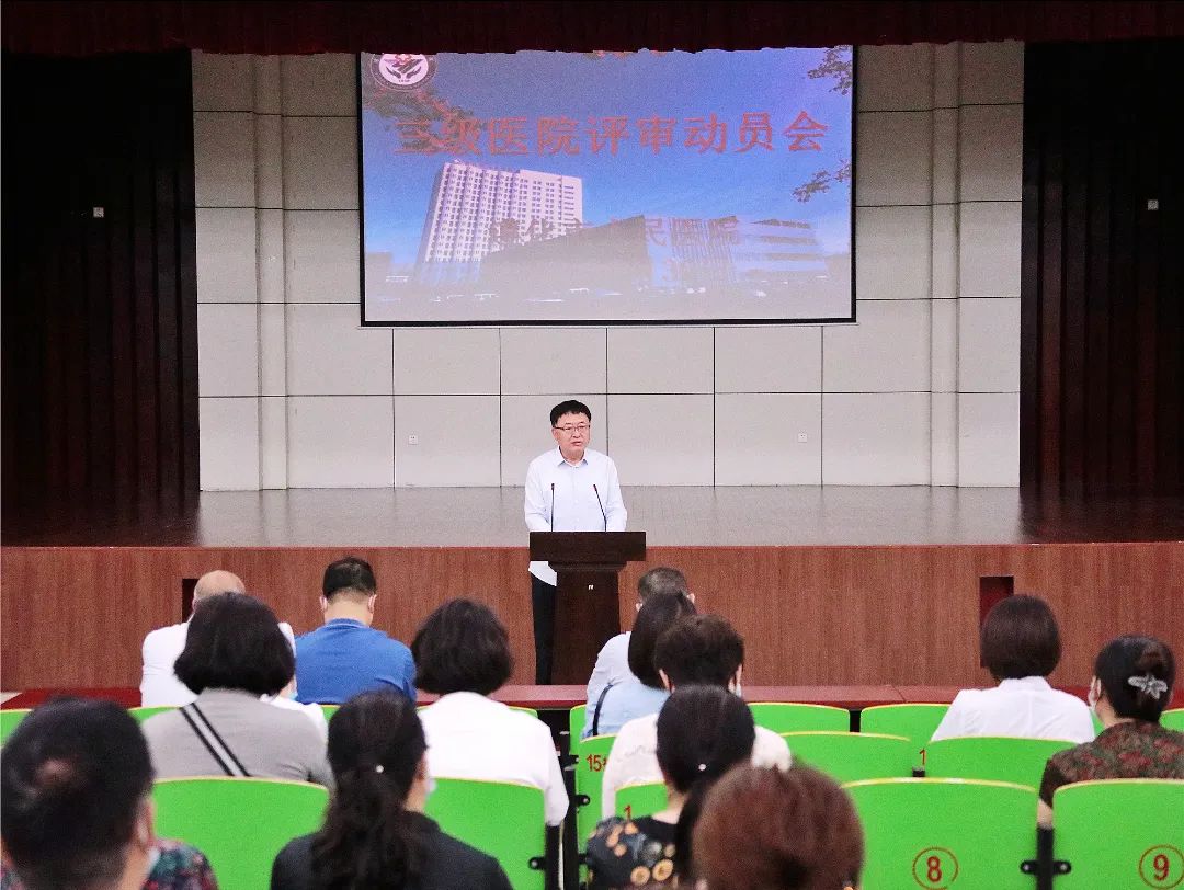 为迎接即将到来的三级综合医院现场评审,号召全院干部职工凝心聚力、再接再厉,2022年6月30日,我院在医院报告厅召开了“三级综合医院现场评审”迎检动员大会。会议由党委书记张晓军主持,全体院领导班子成员和中层管理者参加。