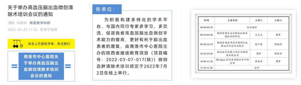 2022年7月2日,院长张中原受邀参加了由陕西省商洛市中心医院主办的陕西省《微创血肿清除术》继续教育项目培训会议。与国家卫健委全国脑血管病防治研究办公室主任王文志一起,为该省医务人员开展省级继续医学教育学分培训。