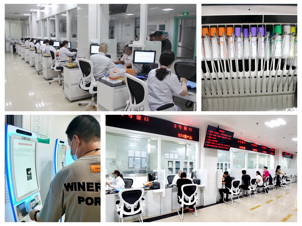为加速推进智慧医院建设,着力提升患者就医体验。我院对门诊采血中心进行了智慧采血信息系统的全面升级。该系统与医院的LIS/HIS系统联通,可直接读取患者就诊卡中的相关信息及检验项目,自动选择采血管、自动粘贴条型码、自动出管、自动传输,大大提高工作效率的同时,也进一步保证了患者信息、采血标本内容的一致性、安全性和数据的可追溯性。“芯”系统,实现了对采血全过程的智能化管理,也让门诊采血大厅从以往的“人声鼎沸”变成了现在的“安静有序”,基本实现了患者的“随到随采”,使患者就医便捷度又上一个新台阶。图2