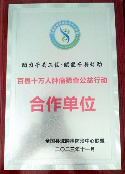 我院成功入选“助力千县工程·赋能千县行动,百县十万人肿瘤筛查公益行动合作单位”,并成为“县域肿瘤防治中心建设单位”。副院长孟庆波受邀参加会议,并接受县域肿瘤防治中心建设单位授牌。