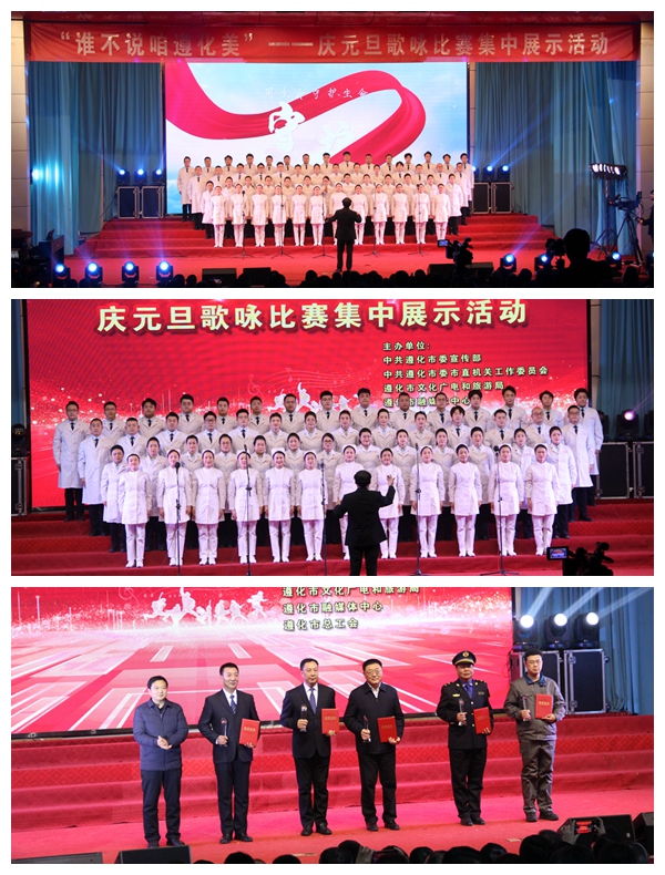 2023年12月28日,由市委宣传部、市直机关党工委、市文化广电和旅游局、市融媒体中心、市总工会联合举办的“谁不说咱遵化美”——庆元旦歌咏比赛,在遵化市第一中学大礼堂如期举行。我院合唱团与全市共计13支代表队一起,用饱满的热情、嘹亮的歌声,唱响时代主旋律,表达心怀祖国、热爱家乡之情,掀起了礼赞大美遵化的浓厚氛围。