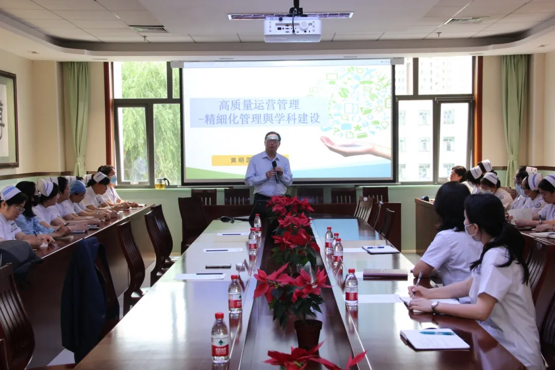 培训过程中,黄明国博士结合国内外最新运营理念和自身经验,以人才梯队建设、优化病种结构、运营管理、流程优化与市场开发等学科建设运营管理的核心要素为切入点,详细讲解了学科的特色与创新、标准化与质量控制、执行率与团队合作、品管机制与资源整合等,对专科疾病结构、服务结构、成本结构、质量提升与效益成本控制等方面所产生的作用。黄教授还对参训人员在实际工作中遇到的具体问题,给予了切实可行的意见建议。此次培训内容详尽、信息丰富,使大家对专科运营的核心理念、管理模式有了更深的认识,尤其对护士长们做好科室运营管理提供了新的助力。