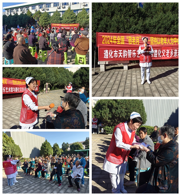 金风送爽重阳际,黄菊飘香祥瑞临。为大力弘扬“尊老、爱老、敬老、助老”的中华传统美德,贯彻落实河北省、唐山市《老龄工作委员会办公室关于深入开展2024年“敬老月”活动的通知》精神,在九九重阳节到来之际,我院老年护理中心与医务社工部携手开展了“坚持以老年人为中心,构建老年友好型社会”敬老月主题活动,让门诊和住院的老人们享受到节日的快乐和精神的慰藉。