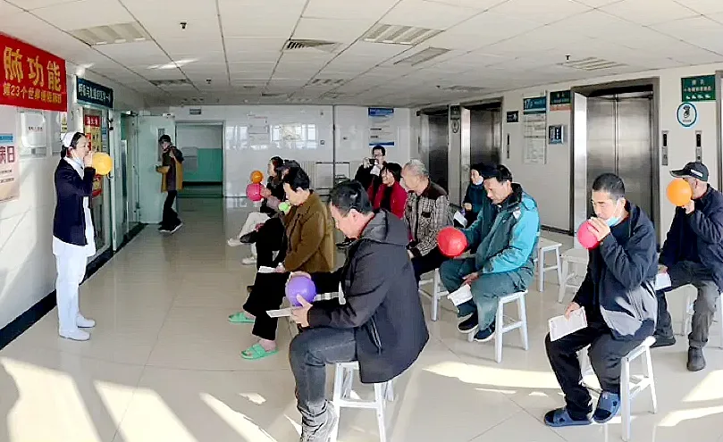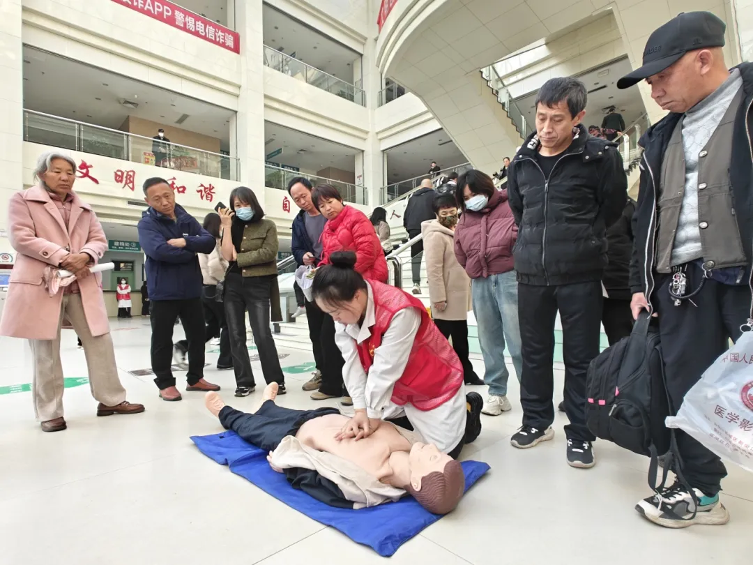 20日上午,来自我院胸痛中心、呼吸与危重症医学一科的医护人员,在门诊大厅为来往群众测量血压、进行肺功能检查,了解自身健康状况。并在发放健康宣教资料的同时,普及了心梗与慢阻肺疾病的危害、预防方法及急救措施;现场还通过人体模型,手把手进行徒手心肺复苏实操培训,让大家亲身体验并正确掌握这项急救技能。此外,呼吸与危重症医学一科还在住院病房,为住院患者及家属讲解了慢阻肺的防治知识,带领大家一起学做呼吸功能训练操,帮助大家深刻认识慢阻肺的危害与防治要点,学会呼吸训练技巧。