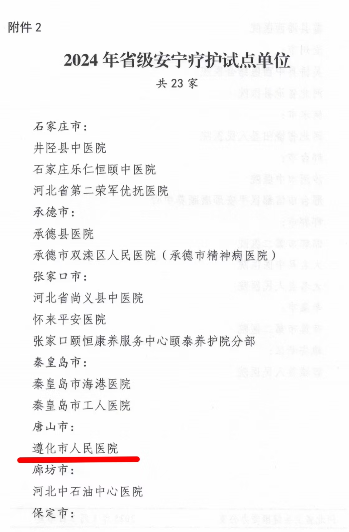 近日,河北省卫生健康委员会与河北省中医药管理局联合发布《关于2024年省级老年友善机构和省级安宁疗护试点单位的评定情况的通报》,我院凭借在安宁疗护领域的突出表现,成功获评“2024 年省级安宁疗护试点单位”。