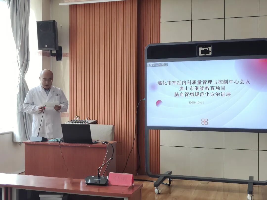 10 月 31 日,遵化市神经内科质量管理与控制中心会议暨唐山市继续教育项目“脑血管病规范化诊治进展”在我院召开。此次会议聚焦神经内科领域的前沿动态与实践要点,为区域内医护人员提供了高质量的学术交流与经验共享平台,对推动我市脑血管病诊疗规范化、提升学科服务能力具有重要意义。