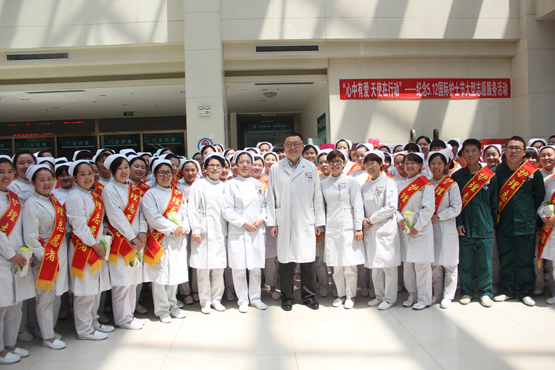 5月12日早8点,身披红色绶带的200多名护理志愿者齐聚一堂,我院举办了“心中有爱 天使在行动”纪念5·12国际护士节大型志愿服务活动,院长张晓军向辛勤耕耘、默默奉献的白衣天使们致以节日的问候和诚挚的敬意,并向全体志愿者发出志愿服务活动开始的口令,话音未落,一百只和平鸽与一百只彩色气球带着天使的爱与祝福飞向蓝天。志愿者们纷纷在承诺板上写下誓言,誓为守护百姓生命与健康贡献青春和力量。医院本部、东院区、北院区及社区门诊携手联动,200多名志愿者来到患者身边,导诊引路,扶老携幼,护送陪检,让就诊患者充分感受到了温馨便捷的服务。走进病房,一幅幅温馨的画面映入眼帘,洗头、洗脚、剪指甲、刮胡子等亲情式的服务,让每个卧床患者感动不已。遵医护士又一次经受了护士节的洗礼,为爱坚守的信念更加坚定不移,让我们将爱永恒传递!