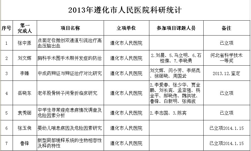 2013年遵化市人民医院科研统计
