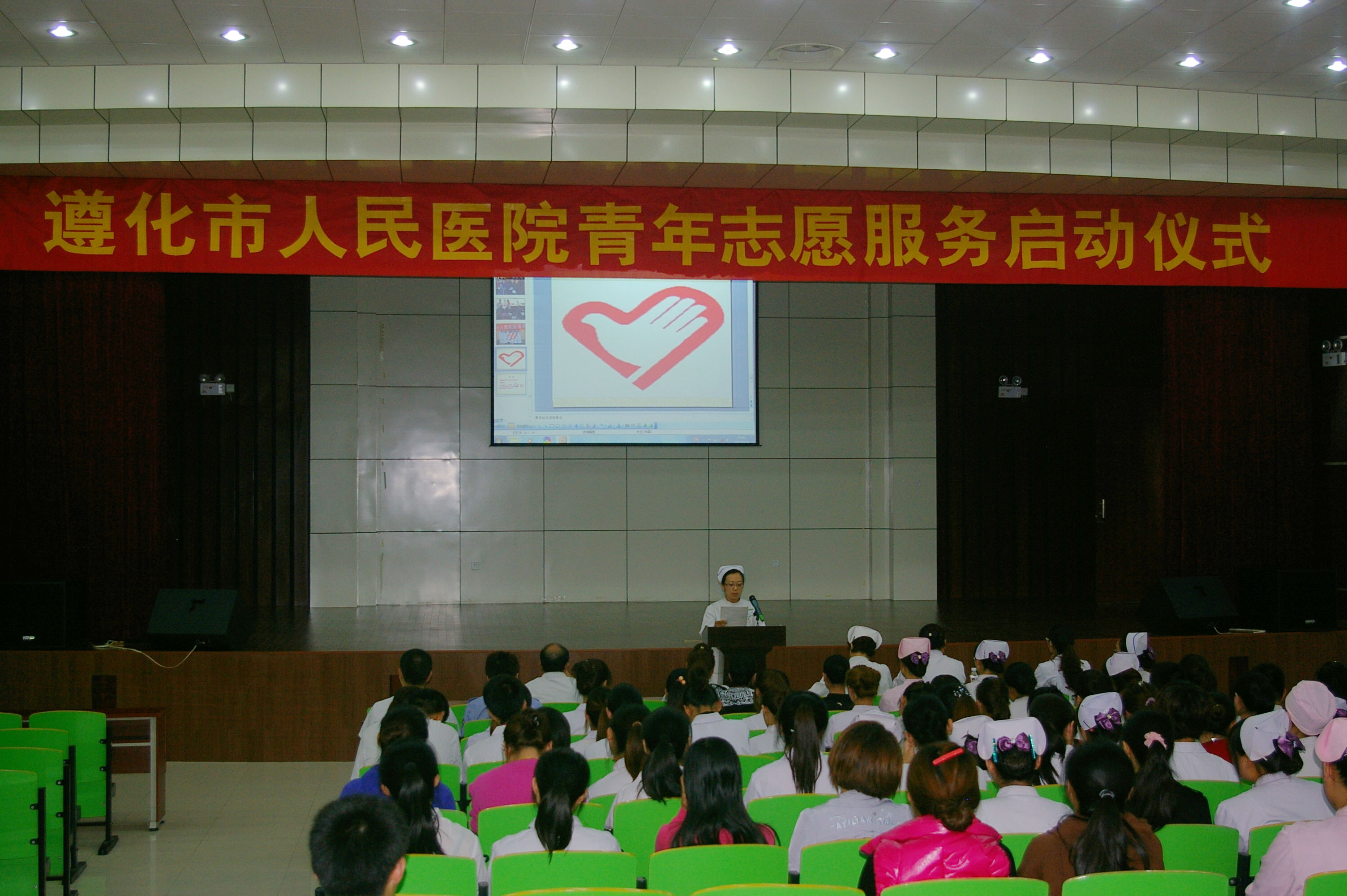 为全面推动“为民服务创先争优”活动的深入开展,扎实推进我院青年志愿服务工作,发扬“奉献、友爱、互助、进步”的志愿者精神,充分展示团员青年良好的精神风貌,增强团员青年的社会责任意识和投身医院建设的热情,结合当前卫生部开展的“三好一满意”活动,医院团支部于9月26日在报告厅举行了“遵化市人民医院青年志愿服务启动仪式”,医院部分职能科室主任、团干部以及80多名青年志愿者代表参加了启动仪式。