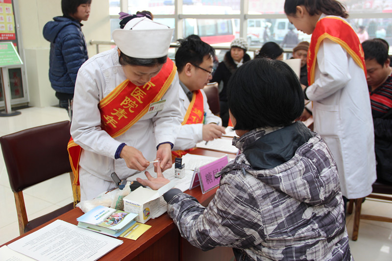 早八点半病人就诊最高峰之时,我院在大厅设立了健康咨询服务台,免费为市民测量血压、血糖,发放高血压、糖尿病等常见病的预防保健知识的宣传资料,还有心理咨询、功能康复的专科医师提供义诊咨询服务,一时间义诊台前挤满了前来咨询、诊疗的人们。在门诊大厅一层、二层的服务台、挂号收费处、扶梯口、超声科、检验科等人员多、易发生拥挤情况的地方都活跃着志愿者们的身影,为前来就诊的患者主动提供迎前服务。为患者解释就诊流程,指引科室位置,维持门诊大厅秩序,虽然大家在不断重复相同的解释内容,但是志愿者们还是尽己所能耐心服务,使每一个受助者都满意而去。