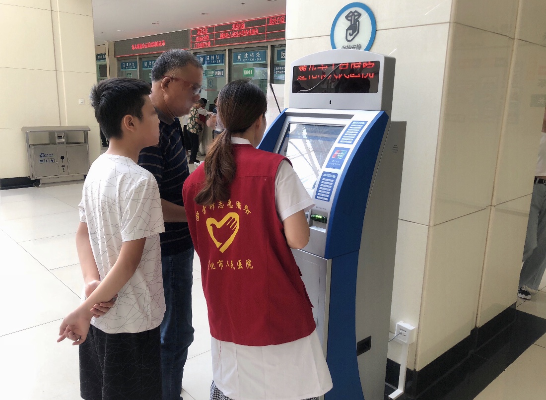 一大早,医院门诊大厅像往常一样人来人往。当一位行动不便的阿姨进入门诊大厅时,我院一位青年志愿者立即上前搀扶老人,耐心询问老人需要什么帮助,并简单为其进行分诊;当见到一位老人因为在自助充值机前不会网上缴费而感到焦急时,一位青年志愿者立刻上前进行帮助:“叔叔,您不要着急,我教您怎么操作,”教老人一步一步进行充值。青年志愿者们以真诚的微笑,温馨的话语赢得了周围患者的一致赞美,他们纷纷表示,这些青年志愿者们很有爱心,服务老人用心、细致。我院青年志愿者们也表示,在为患者提供服务时的过程中,自己也收获了快乐,今后将继续秉承我院“一切以病人为中心”的服务理念,为来院患者提供更加周到的服务。