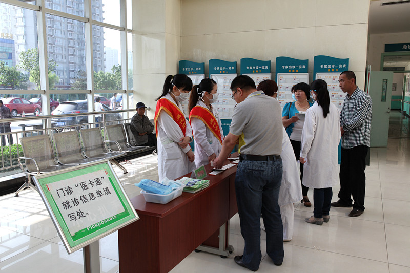 自5月16日开始至5月24日,门诊“医卡通”系统在我院各科门诊全面推行,加速了我院信息化建设进程。变先挂号为先办卡,面对这一新生事物来院就诊患者感到非常陌生,为了给患者尽快讲清说明,引导就诊,医院团支部及时启动志愿服务,职能科室停止休班,迅速组成了30多人的志愿服务队,深入到各层门诊,各医技窗口,设立多个咨询台、建卡登记处。各职能科室主任带队助诊,上前询问做在患者驻足前,耐心讲解,反复说明“医卡通”的好处,帮助患者填写信息、办卡充值、打印明细、引导就诊程序。志愿者们的热情服务迅速缓解了患者的急躁情绪,几天下来门诊患者感受到了“医卡通”的便捷,志愿者们的热情服务深受患者好评。患者的需要就是志愿服务的目标,遵医志愿服务愿为患者助诊一路同行。